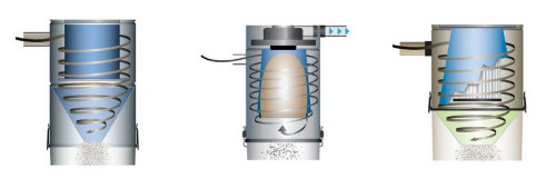 Jednostki Centralne Vacuflo True Cyclonic wykorzystają powyższa metodę filtracji dzięki specjalnej konstrukcji możliwe jest sprzątanie bez użycia dodatkowych filtrów i worków na zanieczyszczenia. W przypadku tego typu jednostek obsługa ograniczona jest do opróżnia śmieci co 7-12 miesięcy.