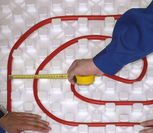 Wyjątkowo korzystną cechą ogrzewania podłogowego jest równomierny i subtelny sposób oddawania ciepła, którego strumienie unoszą się z dołu do góry. Aby ten mechanizm działał w pełni efektywnie, orurowanie układa się na odpowiednio dobranej warstwie termoizolacji. Przede wszystkim ogranicza ona straty ciepła do gruntu, które w tej sytuacji mogą być znacznie większe niż w przypadku podłóg nieogrzewanych. Jej drugą funkcją jest natomiast kierunkowanie strumieni energii cieplnej w kierunku pomieszczenia. Najlepiej w tej roli sprawdzają się płyty EPS o specjalnie wyprofilowanym kształcie, który umożliwia prowadzenie rur w warstwie izolacji, jak np. Knauf Therm Floor Heating. Na powierzchni materiału znajdują się wypustki, między którymi mocuje się rury bez użycia dodatkowych akcesoriów montażowych, a dodatkowy frez na brzegach płyt pozwala na tworzenie trwałych połączeń między nimi. Materiał o większych rozmiarach niż standardowo sprawia ponadto, że układanie ocieplenia przebiega szybciej.