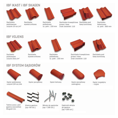 W ofercie IBF znajduje się także pełny asortyment dachówek uzupełniających.