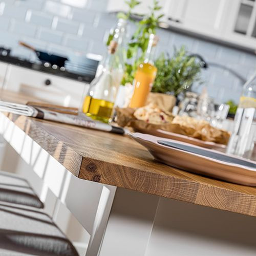Wyszukane materiały, stylowe wykończenia, subtelne zestawienia dodatków - to cechy, które doskonale opisują zestaw mebli kuchennych Jolanta II. Całość została zaaranżowana w pomysłowo zagospodarowanej przestrzeni kuchennej, która wnosi oddech i harmonię do najważniejszego miejsca w domu. Zestaw Jolanta II to wyjątkowe połączenie klasycznej bieli z drewnianymi blatami, natomiast całość podkreślają subtelnie wykonane frezy.