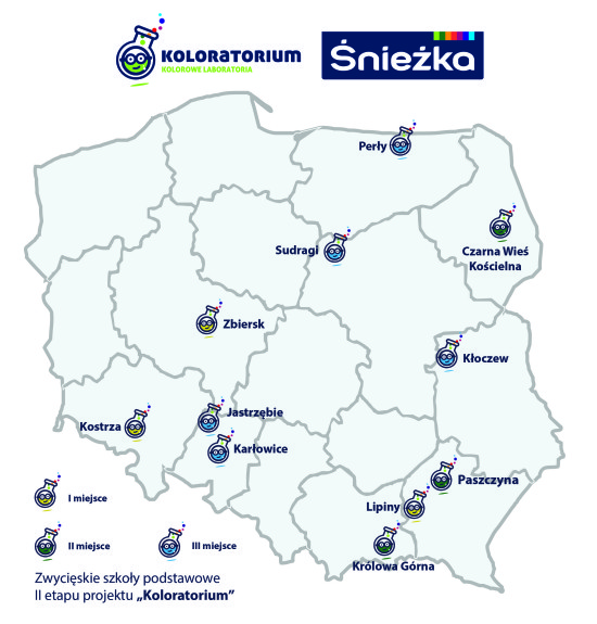 Oto lista 11 zwycięskich szkół podstawowych ogólnopolskiej edycji „Koloratorium”: