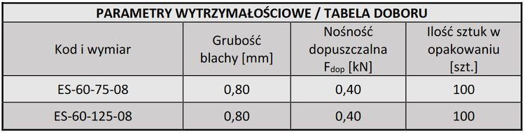 Łącznik metalowy ES stosowany jest jako element mocujący do kształtowników stalowych typu CD 60/27w konstrukcjach rusztów okładzin gipsowo-kartonowych ścian i sufitów.