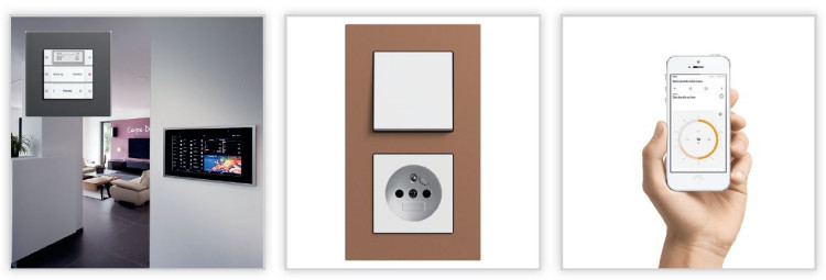 - jednolity wygląd gniazd, wyłączników, domofonów, inteligentnych czujników KNX/EIB, przycisków radiowych i sterowników dźwięku Revox