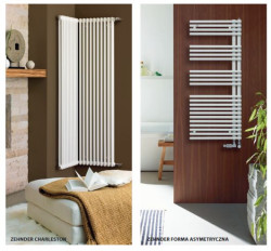 Rozszerzona paleta grzejników łazienkowych podstawowych z wysokowydajnym grzejnikiem Zehnder Virando Hanger (ciągła orientacja rur poziomych przeplatana wygodnymi wieszakami na tkaniny). Oferta wzbogacona licznymi wariantami grzejników o zasilaniu mieszanym – zastosowanie do instalacji z pompami ciepła oraz domów, w których pojawia się zapotrzebowanie na ciepło poza sezonem grzewczym. Instalacje wentylacyjne z odzyskiem ciepła można zakończyć wylotami w kanałach grzewczych usytuowanych przed dużymi przeszkleniami.