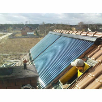 Grupa solarna z wyświetlaczem i elektronagnetycznym sterowaniem przepływu + zbiornik c.w.u. 300 dm3 ze stali nierdzewnej, 2 x wężownica miedziana, anoda, grzałka 1,5 kW, zawór bezpieczeństwa + zbiornik ekspansyjny + płyn solarny + osprzęt
