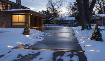 Zasada działania jest podobna jak w przypadku instalacji rynnowej. Obok przewodów grzejnych, używa się też specjalnych mat. Wykonane są one przeważnie z siatki z włókna szklanego, do której przymocowany jest przewód grzejny. Sprzedawane są w gotowych do montażu kompletach, o różnych wymiarach - tak, by móc je łatwo dopasować do wymiarów ogrzewanej powierzchni. Maty układa się znacznie szybciej od przewodów, ale i tak montaż instalacji na posesji jest dużo bardziej pracochłonny niż na dachu - o ile nie wykonuje się go na etapie budowy domu. Elementy grzejne - zarówno kable, jak i maty - układa się bowiem pod nawierzchnią podjazdu.