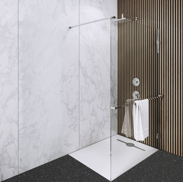 Charakteryzuje się eleganckim, nowoczesnym designem oraz ponadczasową formą z ekskluzywną maskownicą o niespotykanym innowacyjnym kształcie. Brodzik wystarczy podłączyć do kanalizacji i przykleić do posadzki, a po wyschnięciu będzie gotowy do użytku bez konieczności dodatkowego wykańczania. Fabrycznie wyprofilowane spady zapewniają odpowiednie zbieranie wody z całej jego powierzchni.