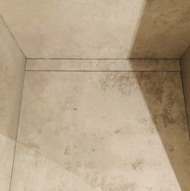Jedyne, co widzimy to szczeliny w posadzce przez które odpływa woda. Zagięty kołnierz ułatwia montaż przy ścianie i zapewnia optymalne odsunięcie kratki od powierzchni kafelek ułożonych na ścianie.