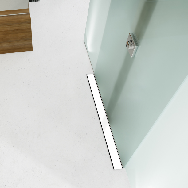Zobacz na stronie producentaPREMIUM ZK GLASS – odpływy liniowe z kołnierzem izolacyjnym zagiętym do montażu przy ścianie, wyposażone w kratkę wykończoną szkłem hartowanym 8 mm.