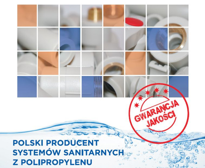 Elementy systemu: rury i kształtki z polipropylenu PP-R (tzw. TYP 3) w kolorze szarym, białym, średnica zewn. Ø 16, 20, 25, 32, 40, 50, 63, 75, 90 mm; sztangi dł. 4 m; wykonanie według DIN 8077, DIN 8078, DIN 19962, PN-C 89207