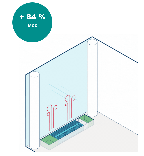 W Katherm HK postawiono na nową jakość przepływu powietrza. Moduł mocy zawiera ciągłe pasmo wentylatorów poprzecznych, które napędzane są przez jeden, wysokowydajny silnik. Dzięki nowemu układowi sprzęgającemu uzyskano:
