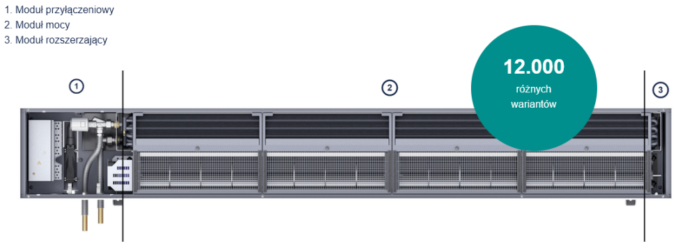 Na koniec zostaje moduł rozszerzający, który odpowiada za elastyczne dostosowanie systemu do lokalnych warunków i układu instalacji. Niezależnie od tego, czy masz do czynienia z systemem 2- czy 4-rurowym, ten element maksymalizuje moc, optymalizuje przepływ i ogranicza hałas. I to wszystko bez zajmowania dodatkowej przestrzeni w podłodze.