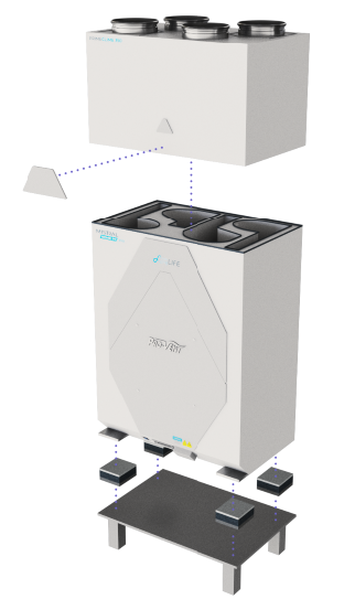 Moduł pompy ciepła montuje się bezpośrednio na centrali wentylacyjnej. Po podłączeniu przewodem oba urządzenia są gotowe do pracy.
