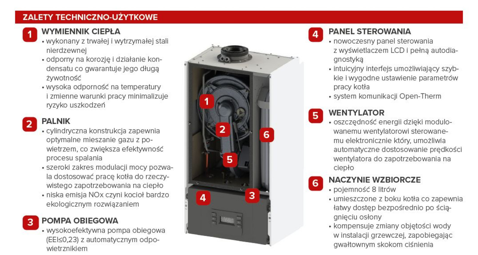 "Kocioł należy do klasy 6. Przy częściowym obciążeniu osiąga sprawność do 108% i ma klasę efektywności energetycznej A."