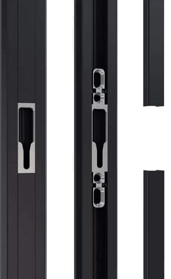 Ciągła listwa w pełni maskuje wszystkie wkręty elementów ramowych, a jedynymi widocznymi punktami pozostają otwory na ryglowanie. Dzięki temu techniczne aspekty konstrukcji pozostają w cieniu, a na pierwszy plan wysuwa się elegancja i harmonia wykończenia.