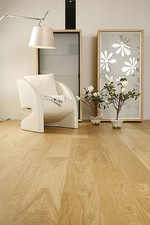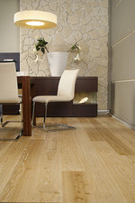 - Dąb Cream (deska, klepka)- podłoga, dodatkowo wzbogacona kremowymi tonacjami, uzyskanymi poprzez zastosowanie białej bejcy, stanowi interesującą propozycję dla kochających klasykę z nutką ekstrawagancji.