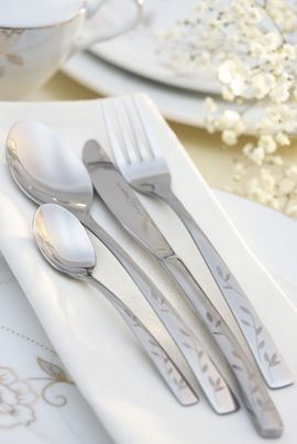 Sztućce z najnowszych kolekcji Fiore i Quadro marki Altom Design wyróżniają się nowoczesną linią oraz misternym zdobieniem. Lustrzany połysk, charakterystyczny dla najwyższej jakości stali, sprawia, że sztućce zachwycają również olśniewającym blaskiem, natomiast delikatny, satynowy ornament dodaje im uroku i klasycznej elegancji.