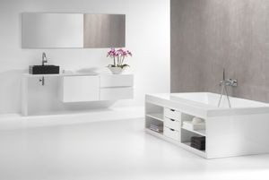 Zabudowa meblowa, podobnie jak forma wanien Encuentro, jest prosta i nowoczesna. Tworzy ją moduł złożony z trzech szuflad w części środkowej i czterech półek (po dwie na każdą stronę). Meble dostępne są w trzech wersjach bieli: matowej, satynowej oraz na wysoki połysk.