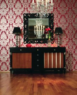 Podłoga w kolorze egzotycznego drewna badi często wybierana jest, aby ocieplić aranżowane wnętrze i stworzyć w nim pogodny nastrój. Pomarańczowo-brązowa soczysta barwa surowca, która z czasem może ściemnieć pod wpływem promieni słonecznych, świetnie spełnia to zadanie. Dzięki dużej twardości (52-56 MPa w skali Brinella) ten „złocisty mahoń” sprawdza się również w stolarce zewnętrznej.