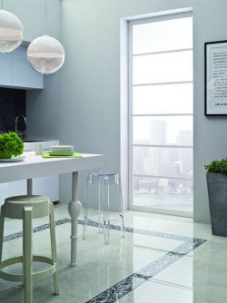 Tak zaprojektowana kuchnia zyskuje jeszcze więcej, jeśli odpowiednio zagra w niej oświetlenie: nic tak nie przykuwa uwagi, jak dobrze przemyślana gra świetlnych refleksów. Płytki 60 x 60 cm polerowanego gresu szkliwionego Sablo zaprojektowano tak, aby ich łączenie wymagało zastosowania fugi o minimalnej grubości: to ukłon w stronę efektu rozświetlonej, niemal jednolitej tafli.