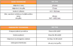 System MB-77HS posiada dwa różniące się izolacją termiczną warianty konstrukcji: ST i HI. Budowa profili pozwala na wykonywanie ekskluzywnych drzwi o dużych gabarytach (ciężar skrzydła do 400 kg), wypełnionych szkłem jedno-lub dwukomorowym, a zastosowane materiały i rozwiązania techniczne pomagają osiągnąć wysoki stopień ochrony cieplnej oraz akustycznej.