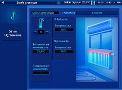 - sterowanie ogrzewaniem - odczyt temperatury w strefie grzewczej oraz na zewnątrz budynku umożliwia zarządzanie w efektywny sposób pracą ogrzewania lub klimatyzacji. Ogrzewanie może także automatycznie przełączać się w energooszczędny tryb pracy po otwarciu okna,