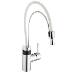 Z kolei w grupie baterii kuchennych nowy, bardzo ciekawy model dołączył do serii KLUDI E-GO. Elektroniczna bateria kuchenna KLUDI E-GO wyposażona jest w moduł elektroniczny z zasilaniem 230V (lub w drugiej wersji w zasilanie z baterii litowej 6V) i jest uruchamiana przez optyczny czujnik ruchu. Jej charakterystyczna, podwójna linia wylewki nawiązuje do naturalnego kształtu strumienia wody. Elastyczny przewód doprowadzający wodę można w razie potrzeby wysunąć z końcówki usztywniającego pręta, co ułatwia mycie naczyń i produktów spożywczych.