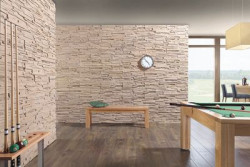 Kolekcja Stonewood to wizja prastarej natury przeniesiona na kamień, opatrzona naturalnym kolorem i fakturą. Stonewood w jasnej tonacji Sahara, dopełnia klimat każdego wnętrza, dodając rustykalną nutę niepowtarzalnej atmosfery dziewiczych lasów. Tekstura kamienia stanowi naturalne dopełnienie nowoczesnych przestrzeni, gdzie szkło oraz metal nierzadko wiodą prym.