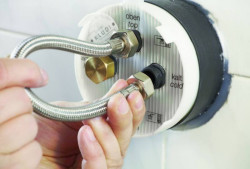 Moduł do przepłukiwania instalacji to kolejny atut KLUDI FLEXX.BOXX. Tę operację można sprawnie wykonać przy pomocy krótkiego, elastycznego węża. Dzięki temu możemy mieć pewność, że zanieczyszczenia, które podczas montażu dostały się do wnętrza rur zostaną usunięte i nie uszkodzą armatury. Moduł do przepłukiwania pozwala też na tymczasowe korzystanie z instalacji wodnej bez konieczności mocowania elementu sterującego. To umożliwia racjonalne rozplanowanie wydatków w czasie remontu: możemy wcześniej zamknąć instalację w łazience, a zakupu elementu natynkowego dokonać na późniejszym etapie prac.