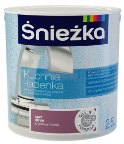 Śnieżka Kuchnia-łazienka dostępna jest w nowoczesnym opakowaniu, w dwóch rodzajach wykończenia powłoki: matowym z paletą 13 kolorów i satynowym – 9 kolorów. Dzięki temu, każdy z nas znajdzie kolor i rodzaj wykończenia odpowiedni do swojego wnętrza.