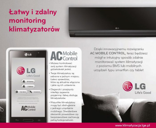 Dodatkowo aplikacja, zgodnie z obecnymi trendami, jest przyjazna w obsłudze, intuicyjna i przyjemna dla oka. Można się o tym przekonać pobierając jej darmową wersję ze sklepu Google Play a następnie testując jak działa. AC Mobile Control pomaga ograniczyć koszty eksploatacji, gdyż zmiana ustawień lub wyłączenie klimatyzacji jest możliwe z każdego miejsca. Tym samym jest to kolejny dowód na dbałość firmy LG Electronics o ochronę środowiska, a także komfort codziennego życia użytkowników urządzeń tej marki. AC MOBILE CONTROL – łatwy i zdalny monitoring klimatyzatorów LG!