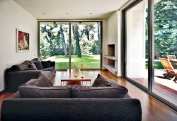 Nowoczesne technologie PVC pozwalają na produkcję szerokich i wysokich skrzydeł przesuwnych, które powiększają optycznie wnętrza i wypełniają je światłem dziennym, nawet w pochmurne dni. Wielkoformatowe przeszklenia mogą się jednak kojarzyć z utrudnioną obsługą, spowodowaną dużym ciężarem skrzydła. Dzięki drzwiom przesuwnym Schüco ThermoSlide optyczne powiększenie przestrzeni do wypoczynku czy pracy staje się kwestią kilku prostych ruchów. Smukła budowa profilu, nowoczesne uszczelki ślizgowe, poręczne dźwignie oraz płaski próg sprawiają, że drzwi unoszą się do góry i bezgłośnie przesuwają się na bok, usuwając wszelkie bariery pomiędzy wnętrzem budynku a ogrodem.