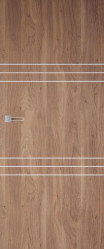 Drzwi ETIUDA firmy POL-SKONE niczym popisowe dzieło zwieńczą aranżowaną przestrzeń nadając jej elegancji i nowoczesnego stylu. Kolekcja zawiera 8 modeli o liniowym układzie ozdobnych detali. Subtelna prostota pionowych szkleń o różnych szerokościach doskonale sprawdzi się w salonach czy sypialniach, wprowadzając do pomieszczeń nieco łagodnego światła, optycznie rozjaśniając wnętrze. Możemy wybrać także drzwi z pełnym skrzydłem, dekorowane wąskimi, aluminiowymi listwami w układzie pionowym lub poziomym. Dzięki tym delikatnym dodatkom kolekcja ETIUDA zyskuje w pełni modernistyczny design. Górna krawędź skrzydła wykonana jest w systemie bezprzylgowym, co także wpasowuje się w nowoczesną stylistykę. Konstrukcja skrzydła opiera się na drewnianym ramiaku obłożonym dwiema gładkimi płytami HDF o powierzchni Lamistone, Silkstone, a dostępne struktury wypełnienia to w zależności od wzoru: „plaster miodu” lub płyta wiórowa pełna.