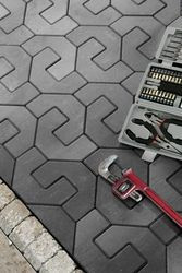 Iberia, czyli układanka. Dostępna w 4 kolorach (grafitowym, popielatym, kasztanowym i pastello) kostka dobrze komponują się z różnymi stylami aranżacji przestrzeni przydomowych. Jest to produkt dekoracyjny jednak ze względu na dużą wytrzymałość elementów, kostkę można układać nie tylko na tarasach, w ogrodach i przydomowych placach - ale także na podjazdach.