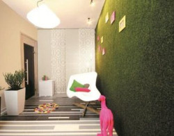 Inspirowana zieloną, pachnącą łąką, oryginalna dekoracja przywołuje na myśl miłe, wiosenno-letnie wspomnienia. Dla odpowiedniego wyeksponowania tak niebanalnie ozdobionej ściany, najlepszym uzupełnieniem kolorystycznym będzie kompozycja odcieni kremowych, beżowych i brązowych. Awangardowego szyku nadają całości intensywnie różowe dodatki.