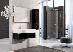 Kolekcja Della. To bardzo elegancka i szykowna kolekcja mebli dostępna w kolorach czarnym (MDF + akryl), antracyt (MDF + akryl) oraz białym. W jej skład wchodzi szeroka szafka podumywalkowa z dedykowaną ceramiczną umywalką Line o szerokości 60 lub 80 cm. Kolekcja wykonana jest z wysokiej jakości materiałów, a ciemne szafki dzięki połączeniu MDF + akryl, mają wysoki połysk. Meble łatwo utrzymać w czystości, dzięki płaskim i gładkim powierzchniom. Szafki mają ergonomiczne uchwyty, mechanizmy samodomykające i hamujące, a także szklane półki. Ceny mebli z kolekcji Della zaczynają się od 245 zł brutto.