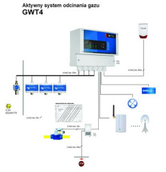 Centrala GWT zasila detektory gazu (głowice) i steruje ich pracą oraz generuje impulsy zamykające zawory ZB/MSV w sytuacjach odbiegającym od zaprogramowanych stanów. Posiada dwa komplety wyjść (dla każdego progu alarmowego) umożliwiających połączenie systemu z automatyką i sterujących sygnalizatorami optycznymi i akustycznymi. Możliwe jest sterowanie kilkoma zaworami przy znacznych odległościach zaworów od systemu wykrywania gazu. Zawór ZB/MSV jest aktywnym elementem systemu GWT, realizuje ideę zabezpieczania instalacji. Dzięki impulsowi elektrycznemu zawory te są zamykane automatycznie. Otworzyć zawór można tylko ręcznie. Specyfika działania zaworów jest tak dobrana, że impuls elektryczny dostępny jest tylko w chwili zamykania. Dzięki takiemu rozwiązaniu zawór odporny jest na zaniki i spadki napięcia.