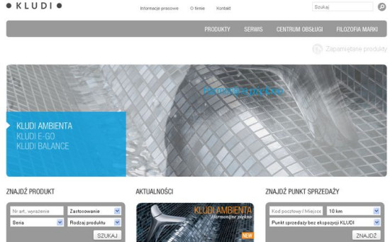 Dla fanów KLUDI AMBIENTA – swego rodzaju uzupełnieniem polskojęzycznej wersji strony KLUDI jest uruchomiony równolegle serwis www.kludiambienta.pl. Strona kierowana jest przede wszystkim do klientów indywidualnych oraz architektów. Pozwala na kompleksowe zapoznanie się z najnowszą serią armatury i akcesoriów KLUDI AMBIENTA oraz jej zaletami.