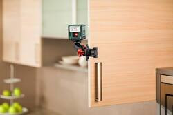 Laser krzyżowy Bosch Quigo to proste w użyciu narzędzie, które pomoże Ci udekorować ściany w niebanalny sposób. W zaledwie kilka sekund po uruchomieniu laser jest gotowy do pracy. Z niezwykłą dokładnością rzuca na ścianę dwie krzyżujące się, prostopadłe linie: pionową i poziomą. Dzięki dodatkowej funkcji nachylenia, za pomocą Quigo możesz wyznaczyć także linie pod dowolnym kątem. Aby używać Quigo, nie potrzebujesz profesjonalnego statywu. Specjalny uchwyt pozwoli na przymocowanie urządzenia choćby na drzwiach szafki, półce lub stopniach drabiny.