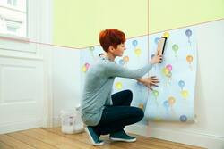 Laser krzyżowy Quigo sprawdzi się także, gdy planujesz położenie tapety. Pozioma linia wyznaczona przez Quigo, idealnie wskaże wysokość górnej krawędzi arkusza. Linia pionowa lasera pomoże Ci natomiast w precyzyjnym przyklejeniu kolejnych pasów tapety. Jeśli chcesz ozdobić tapetę bordiurą, wystarczy lekko podnieść Quigo, aby przesunąć poziomą linię lasera. Wyznaczysz w ten sposób górną krawędź, wzdłuż której przykleisz materiał.