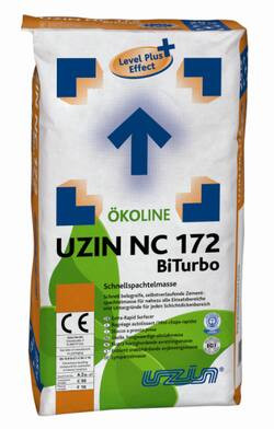 UZIN NC 172 Bi-Turbo to specjalna masa cementowa, w której skład wchodzą wysokiej jakości plastyfikatory. Przeznaczona jest do przygotowania równych, chłonnych powierzchni, które po krótkim czasie gotowe są do układania wykładzin podłogowych wszystkich rodzajów pokryć tekstylnych i elastycznych. Na tę wysoko uszlachetnioną masę szpachlową można wchodzić po ok. 60 minutach. Masa posiada bardzo dobre parametry wytrzymałościowe i może być stosowana bez ograniczenia grubości warstwy w obszarach narażonych na wysokie obciążenia mechaniczne. Możliwe jest także podawanie jej za pomocą pompy. Charakteryzuje się niewielkim skurczem podczas wiązania. Posiada ponadto dobrą przyczepność dla wielu podłoży. Zastosowanie produktu podczas prowadzenia szybkich remontów pozwala na zmniejszenie kosztów całej inwestycji. Zużycie kleju jest mniejsze bowiem nawet o 10%. Co więcej, wsiąkliwość masy UZIN NC 172 Bi-Turbo jest dwa razy większa niż w przypadku zwykłych mas szpachlowych.