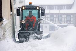 W sezonie zimowym nośniki narzędzi MIC warto wyposażyć w odśnieżarkę z rozrzutnikiem o szerokości roboczej 100 cm z hydraulicznie obracanym kominem wyrzutu i hydraulicznie regulowaną odległością wyrzutu lub w szeroką odśnieżarkę z rozrzutnikiem o dużej wydajności powierzchniowej (szerokość robocza -160 cm). Ze śniegiem i lodem na drogach, alejkach, placach i chodnikach pomoże uporać się pług śnieżny Vario, w różnych szerokościach roboczych od 1.35 do 1.80 m, przystosowany do pracy ze wszystkimi nośnikami narzędzi Kärcher. Doskonałym rozwiązaniem jest również opcjonalna półzawieszana piaskarka z funkcją napełniania bezpośrednio z silosu, która znacznie wpływa na skrócenie czasu napełniania zbiornika i ułatwia obsługę maszyny operatorowi. Zimą nośniki narzędzi można opcjonalnie wyposażyć w łańcuchy na koła, które gwarantują bezpieczeństwo poruszania się po zaśnieżonych i oblodzonych drogach. Ostre krawędzie ogniw łańcuchów ułatwiają manewrowanie i zapewniają lepszą przyczepność.