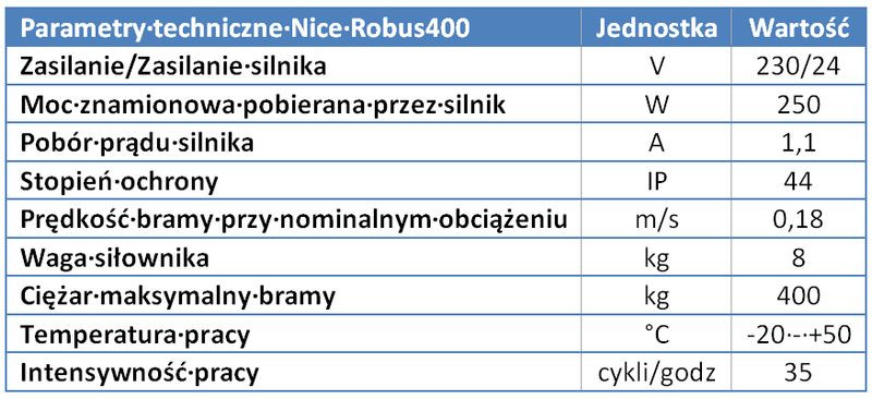 Siłownik Robus400 dostępny jest w zestawach, w skład których wchodzą oprócz siłownika, radioodbiornik SMXI, pilot dwukanałowy Era Flor, zestaw fotokomórek Nice MOFB oraz lampa sygnalizacyjna MLBT. Produkty Nice można nabywać za pośrednictwem sieci blisko 1 500 Partnerów Handlowych zlokalizowanych na terenie całej Polski. Lista Partnerów Handlowych Nice dostępna jest na stronie internetowej www.nice.pl.