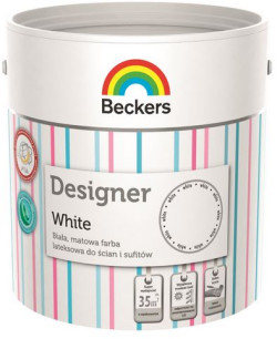 Nowa farba Beckers Designer White zapewnia piękne, matowe wykończenie. Utworzona powłoka jest odporna na mycie wodą z dodatkiem detergentu. Beckers Designer White gwarantuje bardzo dobrą trwałość bieli i wytrzymałość na promieniowanie UV - jest więc idealnym wyborem również do mocno przeszklonych pomieszczeń.
