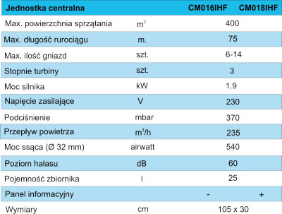 - Hybrydowy system filtracji - trójstopniowy system filtracji oparty na filtracji cyklonicznej oraz samooczyszczającym się filtrze workowym dodatkowo jednostka wyposażona jest w filtr dokładny