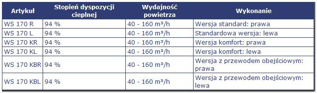 WS 170 to bardzo cichy centralny system wentylacji i wyciągu powietrza przeznazony dla mieszkań o powierzchni do 130 m². Grupa rządzeń WS 170 obejmuje rózne wersje - o wydajności do 160 m3/h.