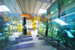 Znaczącym elementem całego procesu produkcji jest sprawna logistyka. Dlatego zaopatrzenie nowoczesnych stołów do cięcia szkła zostało w pełni zautomatyzowane. Magazyn wyposażono w specjalną suwnicę z podajnikiem firmy Lisec, która przy pomocy przyssawek sama zabiera taflę z odpowiednich stojaków. Następnie szkło dostarczane jest na hydrauliczny stół uchylny i w dalszej kolejności transportowane jest na właściwy stół do rozkroju. Warto nadmienić, że obecnie na terenie magazynu można składować ponad 20 rodzajów szkła.