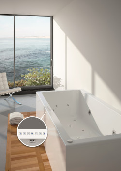Sterownik sensorowy - nowe sterowanie sensorowe to alternatywne rozwiązanie do obecnie dostarczanych z systemami PRO i LUX sterowników elektronicznych. Zapewnia idealnie gładką powierzchnię rantu wanny i jest dostępne w tej samej cenie co tradycyjny sterownik elektroniczny.