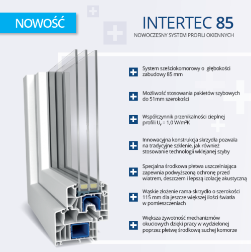 Podstawą leżącą u wprowadzenia przez nas do oferty systemu Intertec 85 są m.in. zmiany poziomu wymagań minimalnych, co do wartości współczynnika przenikania ciepła, określone w Warunkach Technicznych. Jest to tym samym już kolejna (obok systemów Ideal 8000 oraz Ideal 7000 ) propozycja systemowa w segmencie profili o głębokości 85 mm, cechujących się obniżoną do poziomu Uf= 1,0 W/m2K wartością izolacyjności termicznej – podkreśla Marcin Szewczuk, Marketing Manager aluplast sp. z o.o.