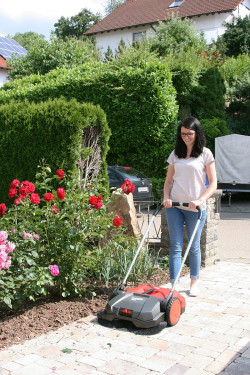 Ogromną zaletą zamiatarki STARMIX 355 jest prosta obsługa: żeby ją uruchomić, wystarczy lekko pchnąć urządzenie - szczotki połączone bezpośrednio z kołami od razu zaczynają się obracać, ochoczo zabierając się do pracy. Całe urządzeni jest zbudowane z wytrzymałego plastiku. Maszyna jest lekka - waży ledwie 6 kilogramów. Bez problemów poradzą więc sobie z nią nawet osoby niewielkiej postury. A specjalne rolki boczne zabezpieczają całość przed przypadkowym uszkodzeniem w czasie pracy.